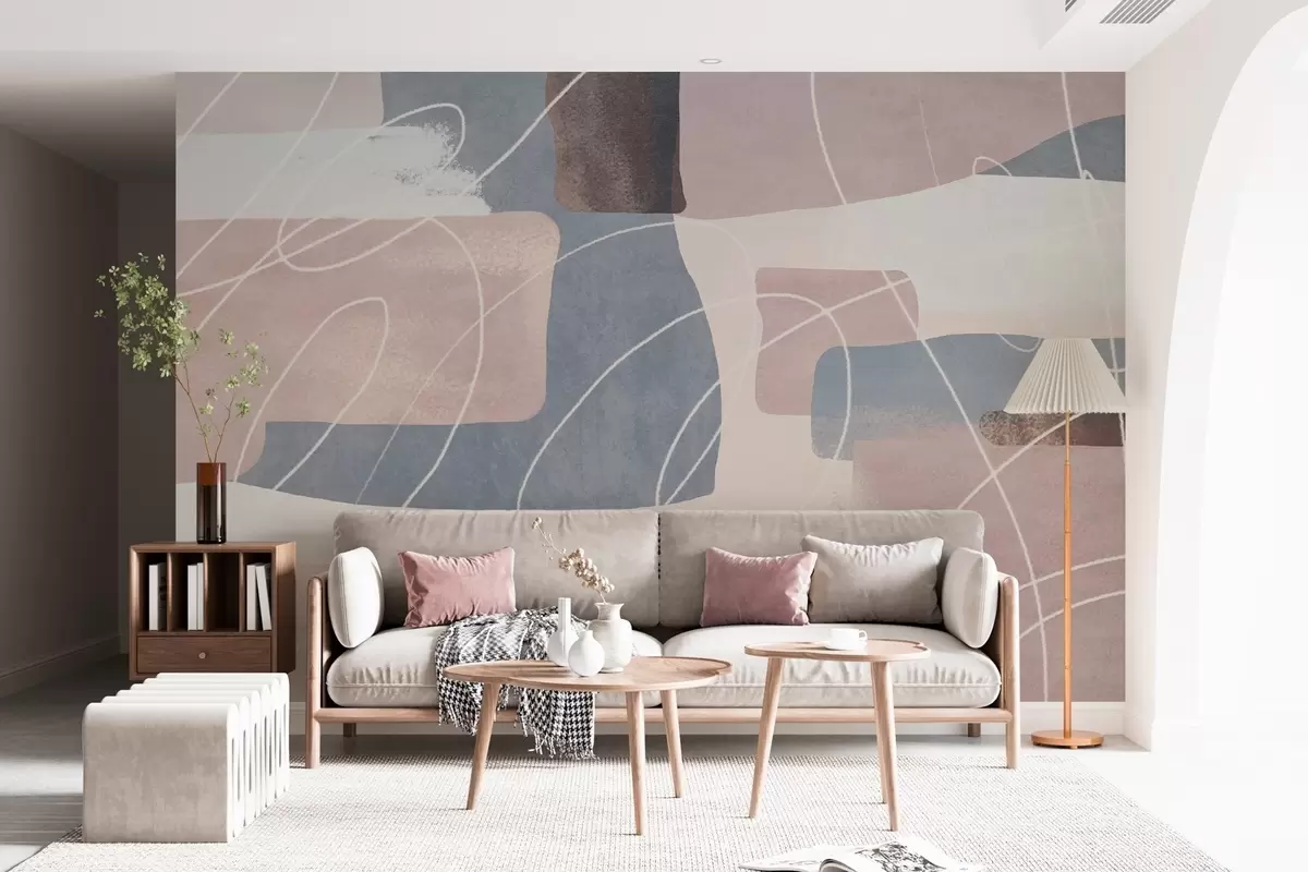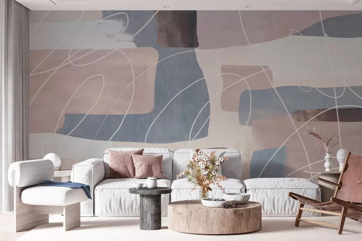 Fotomurales abstracción moderna en tonos rosa empolvado, gris azulado, beige y marrón Nr. w04877