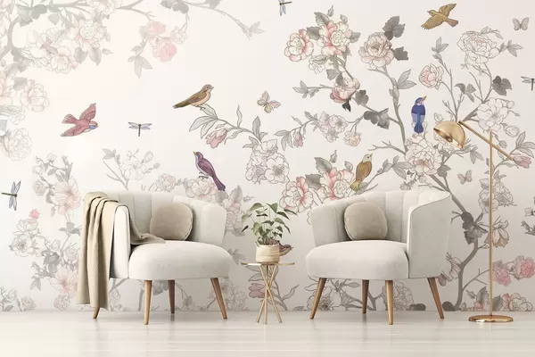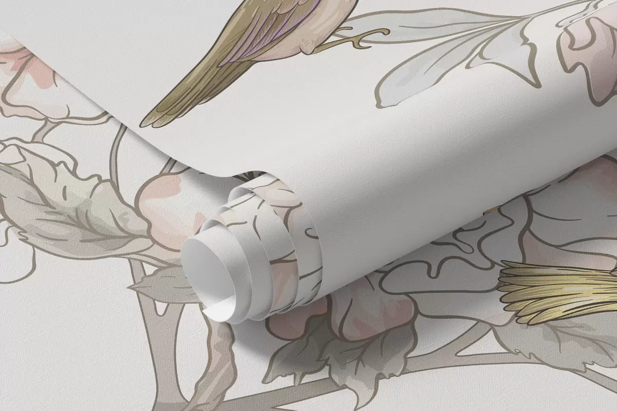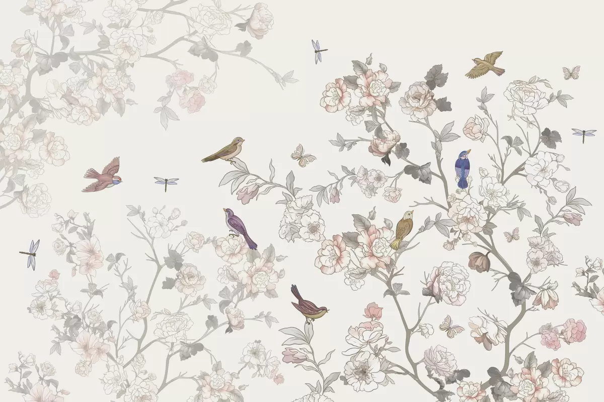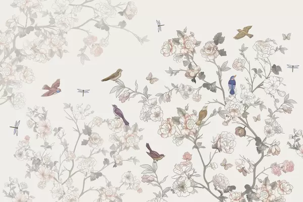 Fotomurales Pájaros cerca de ramas con flores Nr. w04939