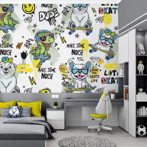 Se puede limpiar suavemente con una esponja suave. Los murales de pared con recubrimiento de barniz pueden limpiarse con agua.