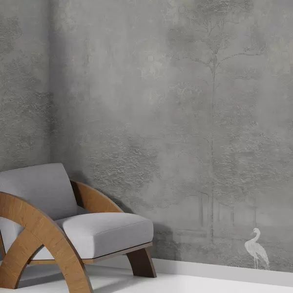 Fotomurales Bosque ligero y brumoso con una garza en tonos grises fríos Nr. w04953v2