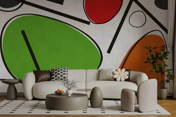 Fotomurales Formas geométricas abstractas con líneas y áreas de colores vivos. Nr. w05017v1