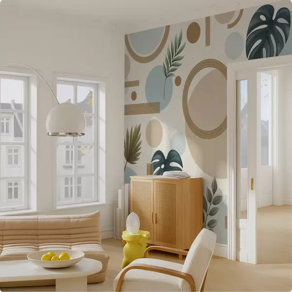 Fotomurales Diseño geométrico con hojas y círculos en tonos suaves. Nr. w05018