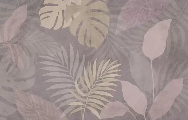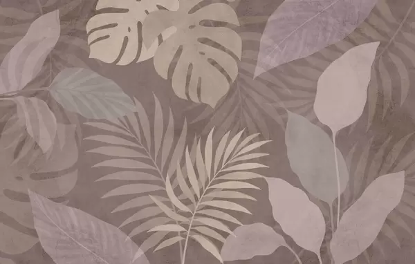 Fotomurales Hojas tropicales texturizadas sobre fondo arenoso. Nr. w05063