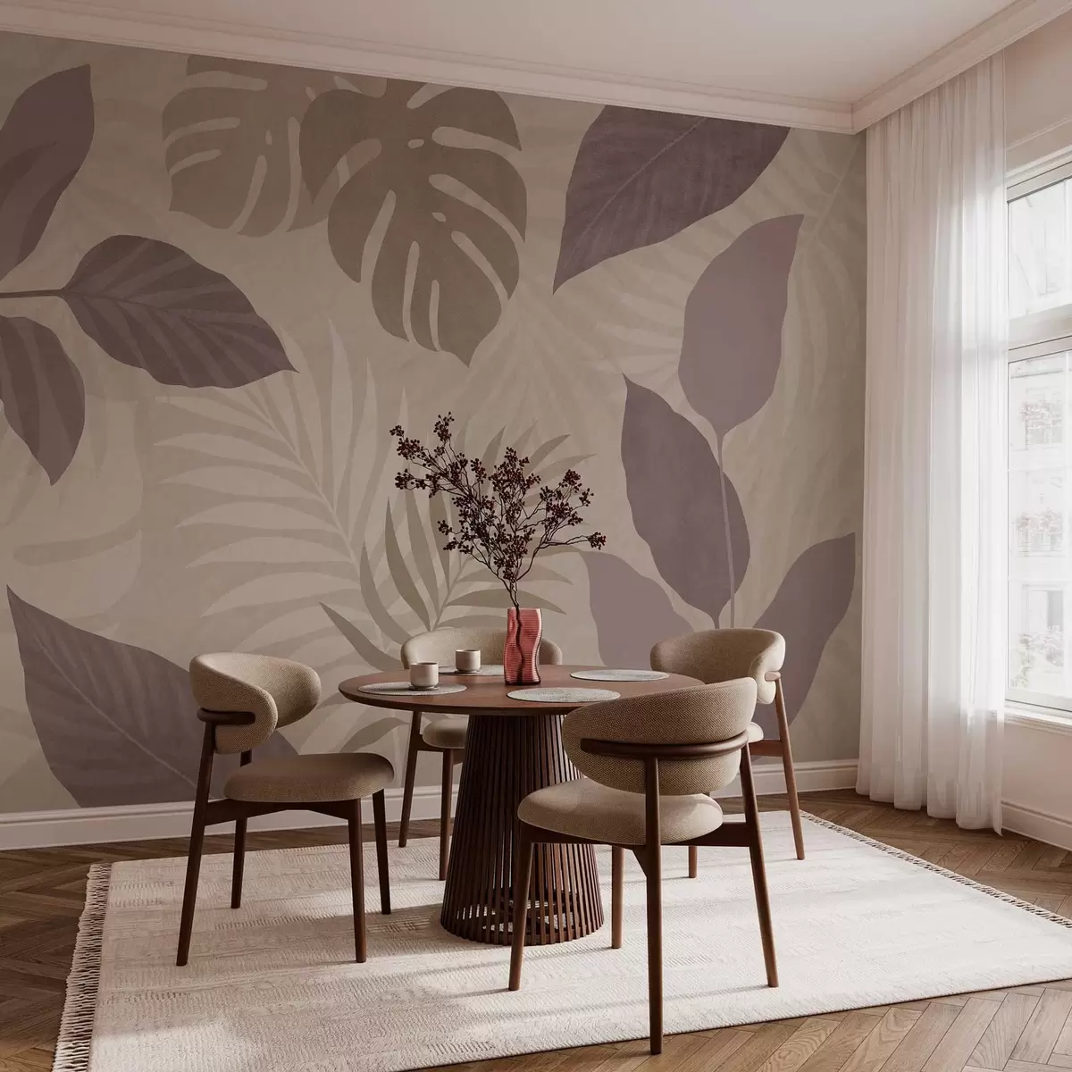 Fotomurales Hojas tropicales texturizadas sobre fondo arenoso. Nr. w05063