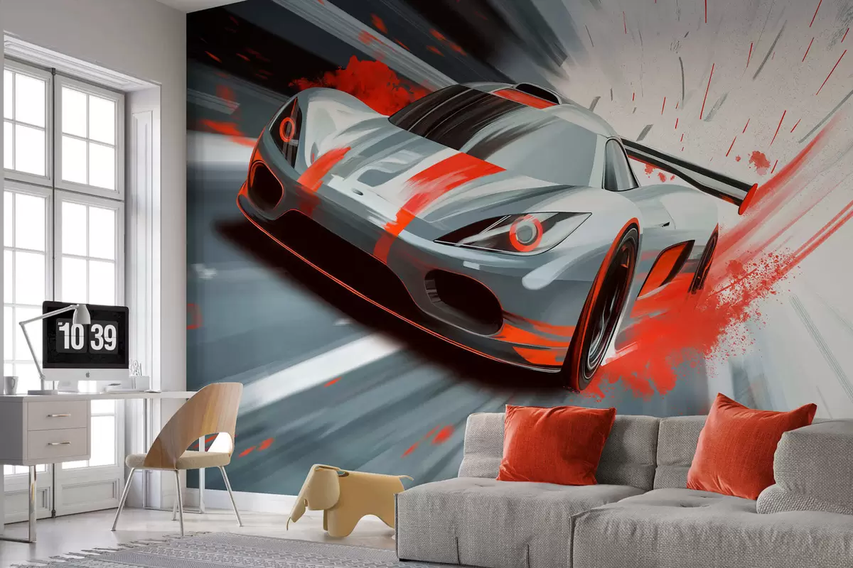 Fotomurales Coche deportivo dinámico en estilo de dibujo digital con detalles en rojo. Nr. w05069v1