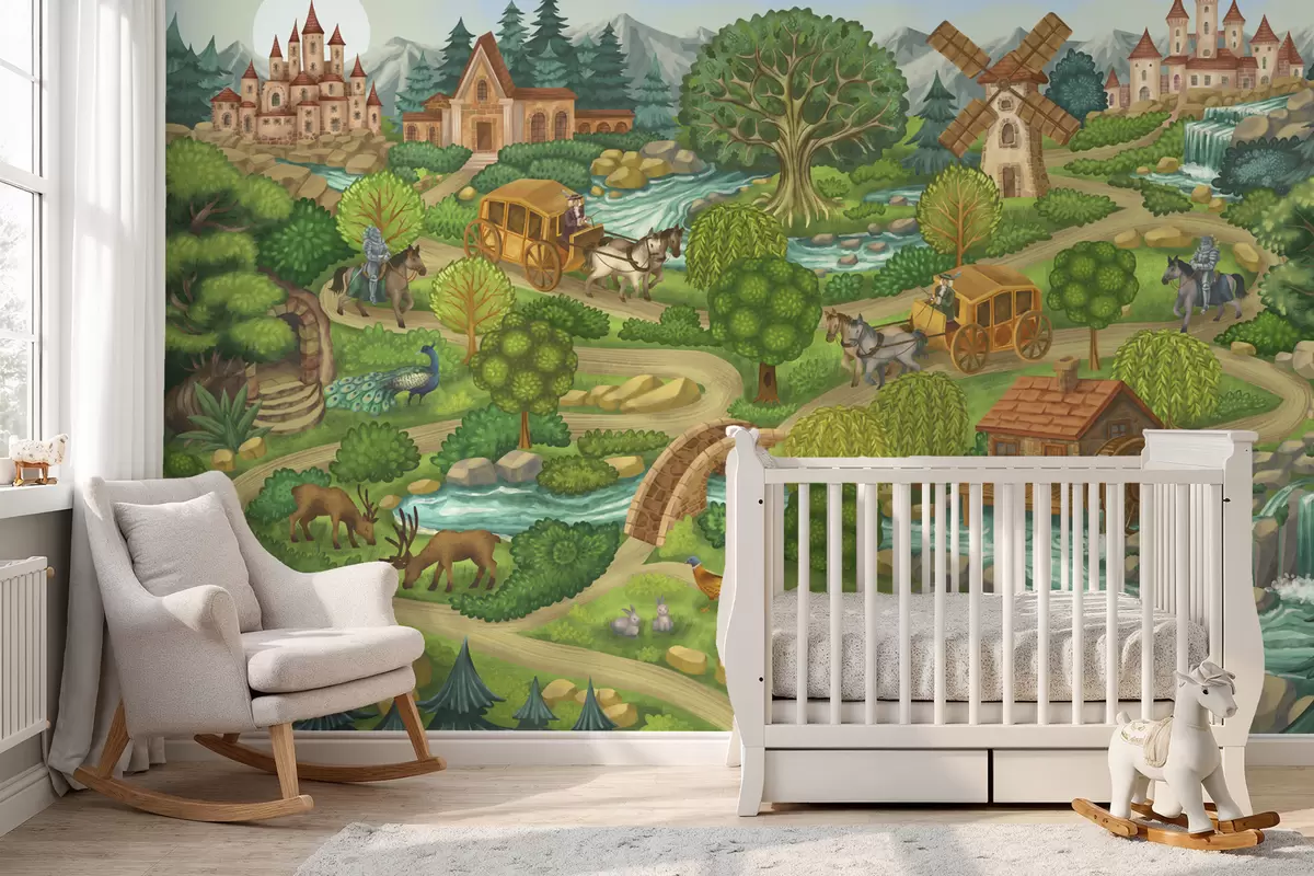 Fotomurales Ilustración de hadas con castillos, bosques, ríos y viajeros. Nr. w05091v1