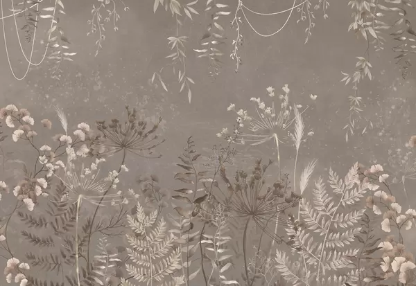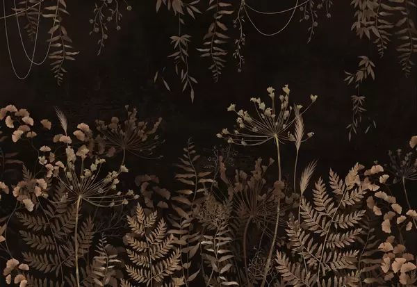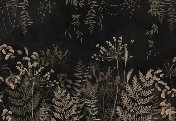 Fotomurales Diseño botánico oscuro con flores y hojas. Nr. w05092