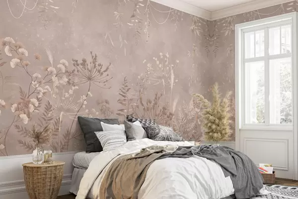 Fotomurales Motivo botánico en beige suave con flores silvestres. Nr. w05092v2