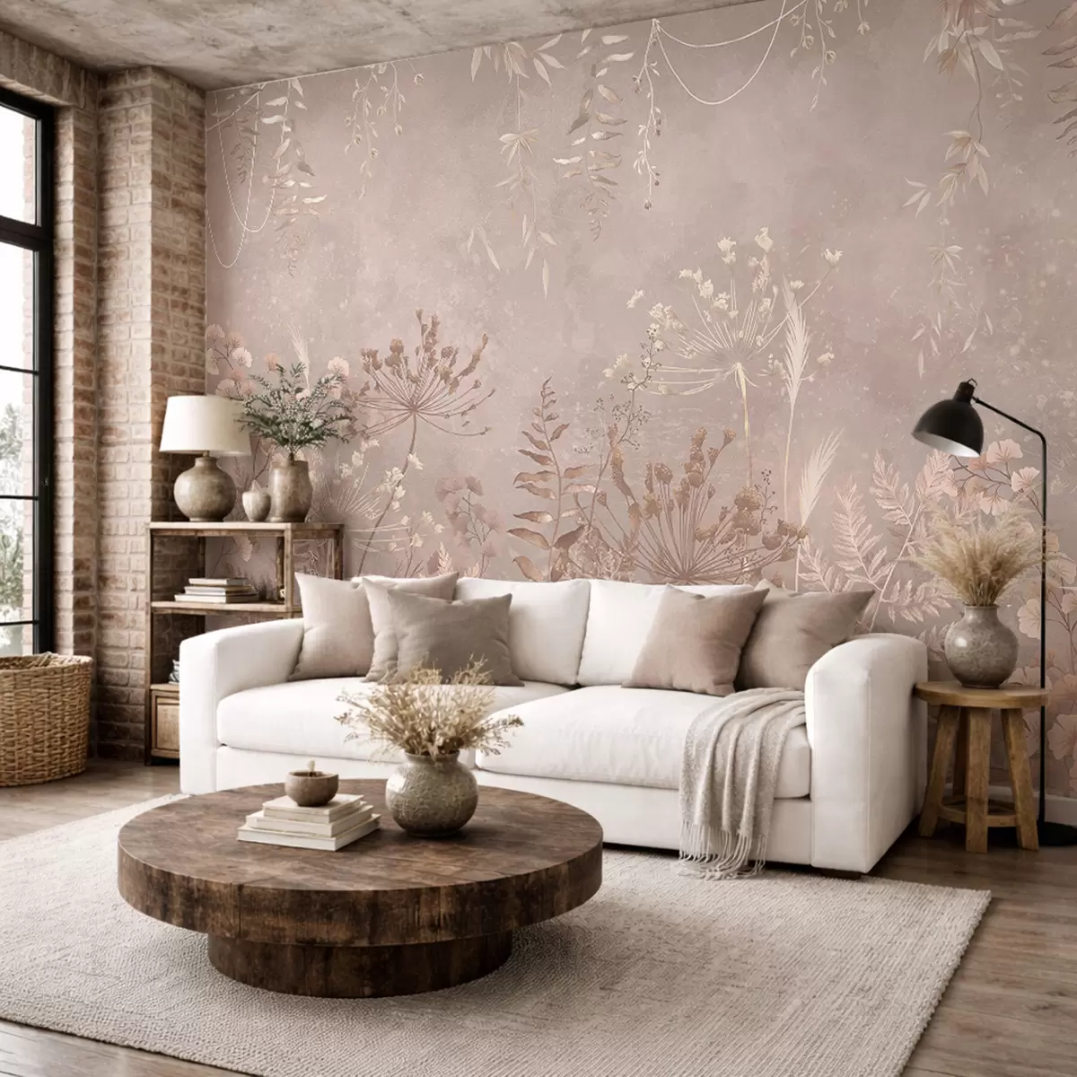 Fotomurales Motivo botánico en beige suave con flores silvestres. Nr. w05092v2