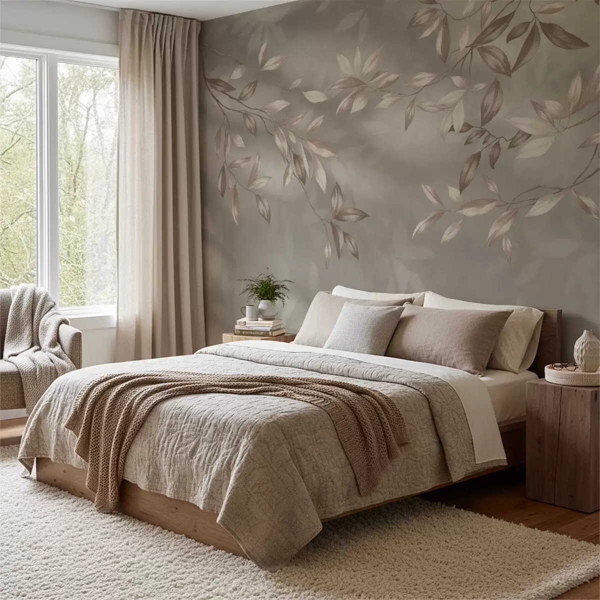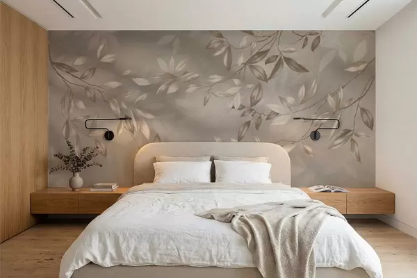 Fotomurales Elegantes ramas frondosas en tonos beige sobre un fondo claro. Nr. w05113