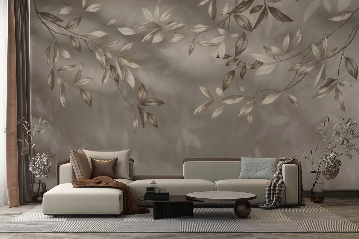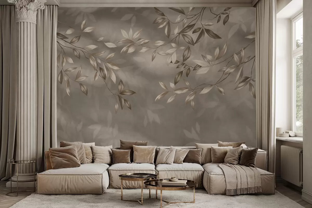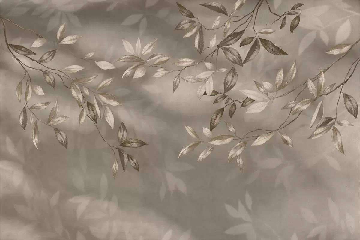 Fotomurales Delicadas ramas frondosas en tonos beige sobre un fondo claro. Nr. w05113v2