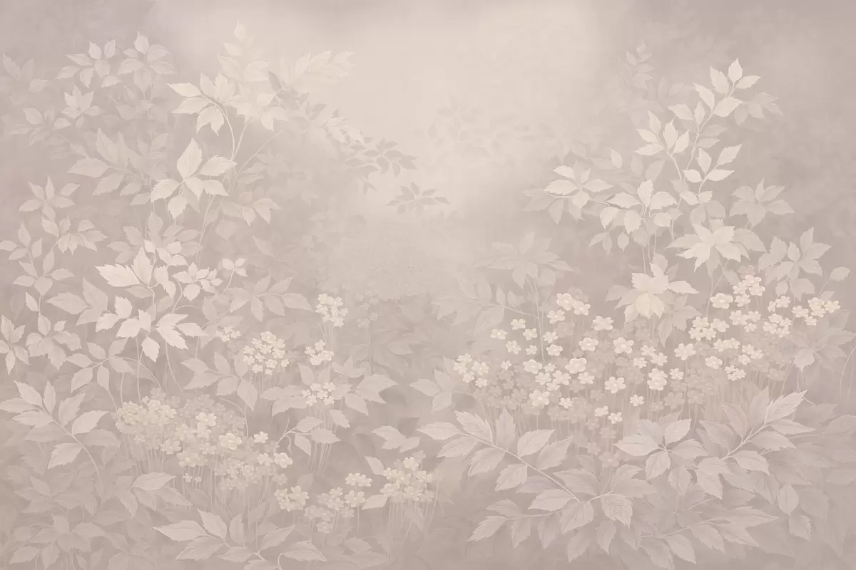 Fotomurales Adorno botánico ligero con hojas y pequeñas flores. Nr. w05115