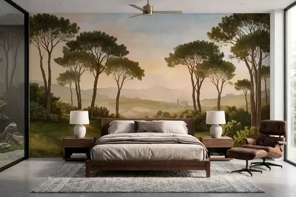 Fotomurales Paisaje con árboles bajo la cálida luz del atardecer Nr. w05122