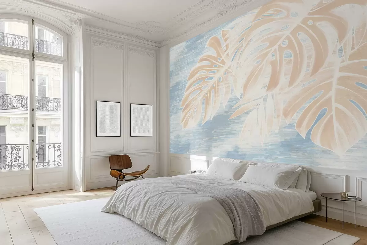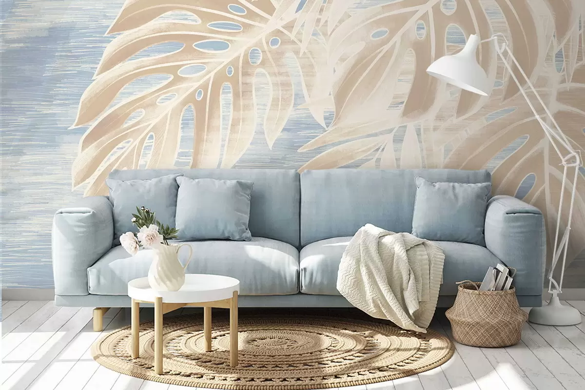 Fotomurales Hojas abstractas en cálidos tonos beige sobre un fondo claro. Nr. w05130