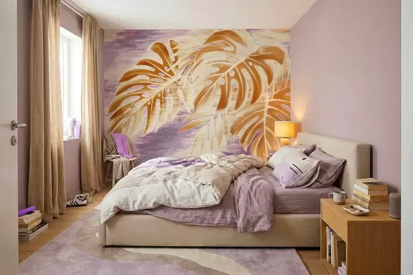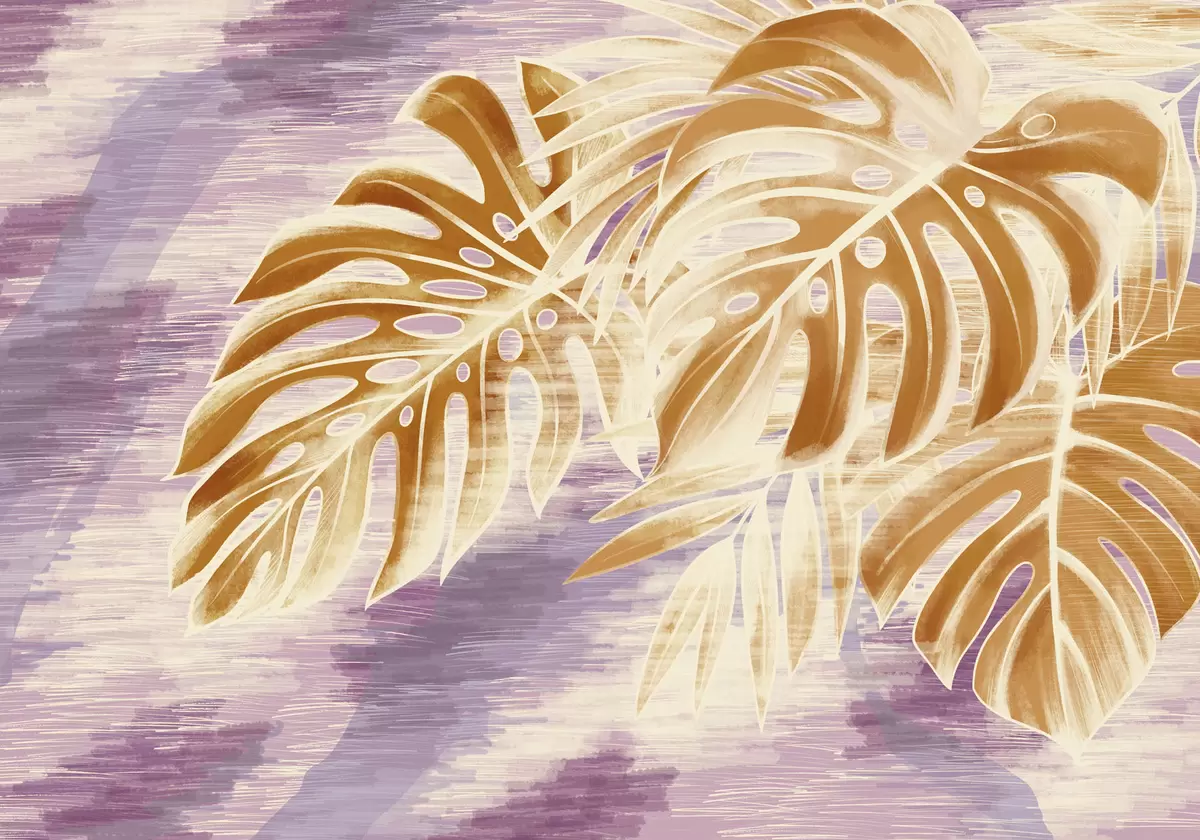 Fotomurales Hojas en cálidos tonos naranjas sobre fondo morado. Nr. w05130v2