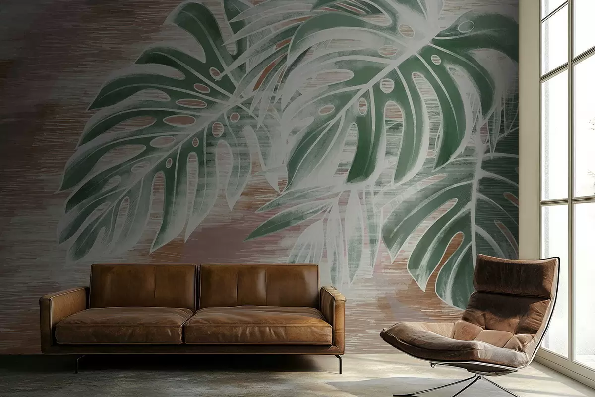 Fotomurales Hojas verdes sobre una base abstracta de textura cálida. Nr. w05130v3