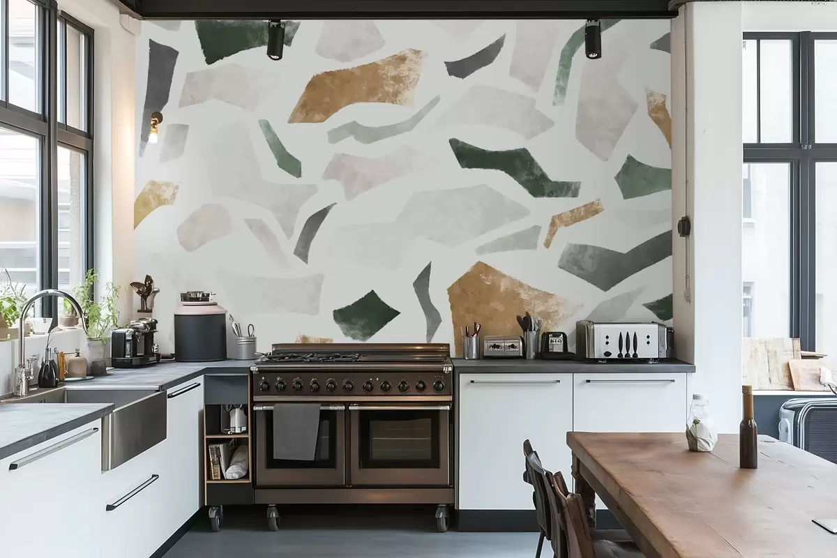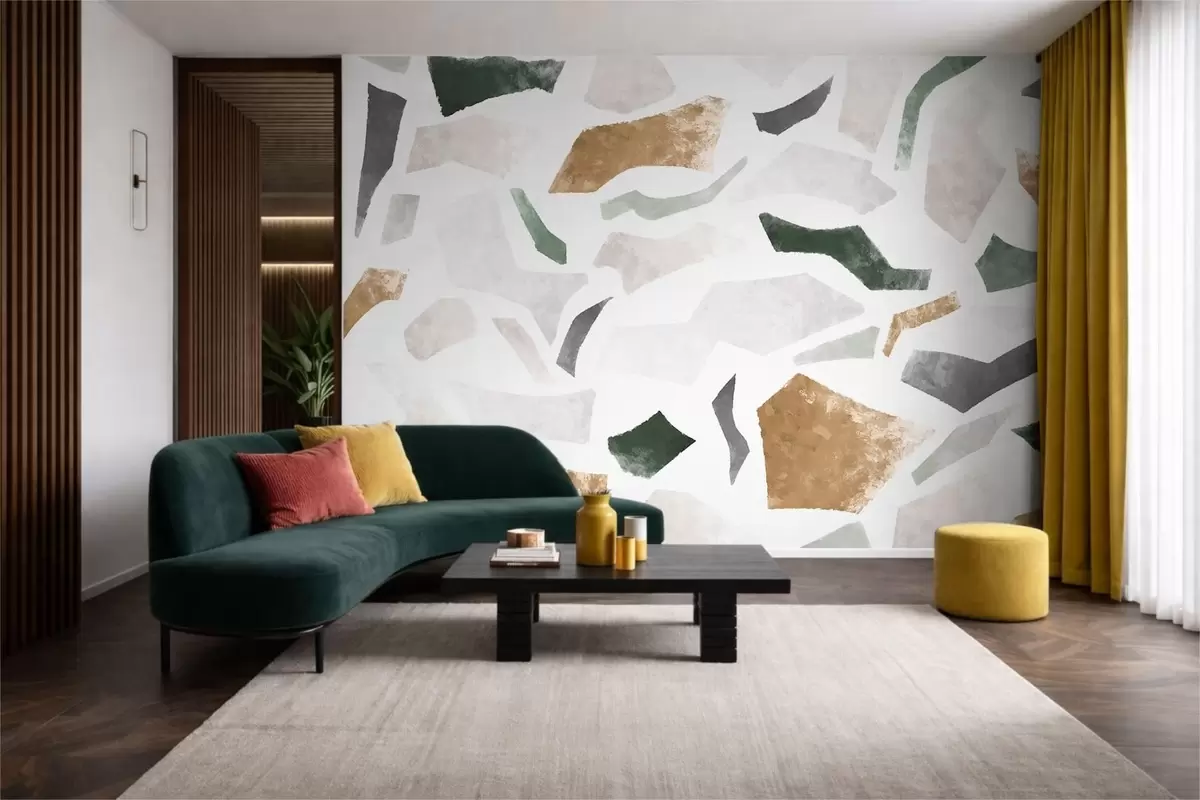 Fotomurales Fragmentos abstractos con textura en tonos verdes y beige Nr. w05146
