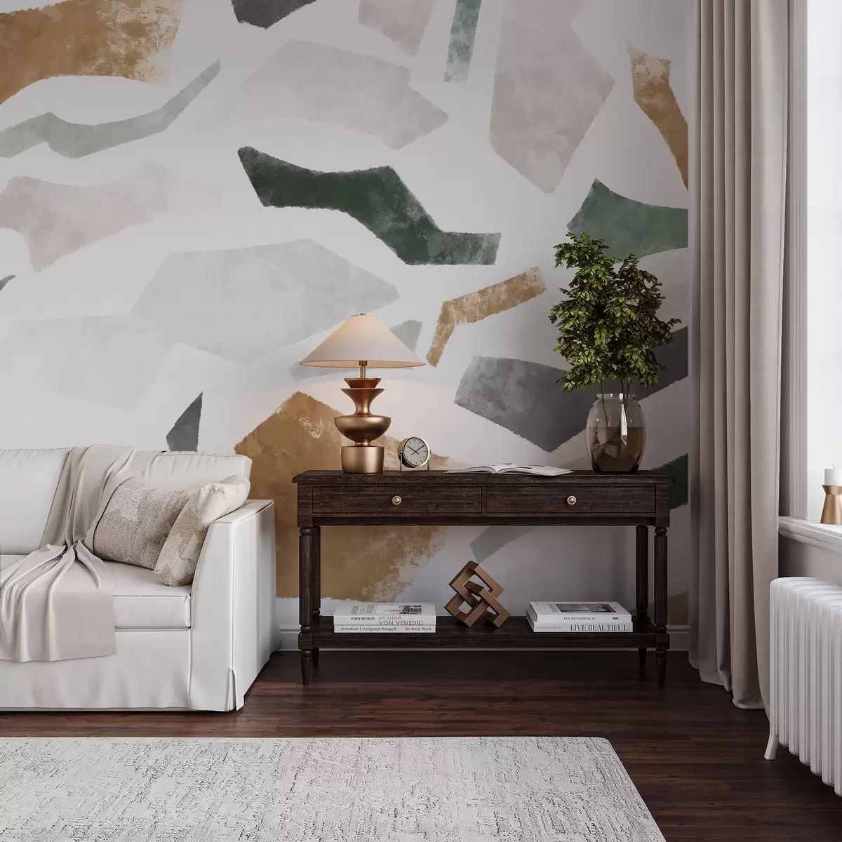 Fotomurales Fragmentos abstractos con textura en tonos verdes y beige Nr. w05146