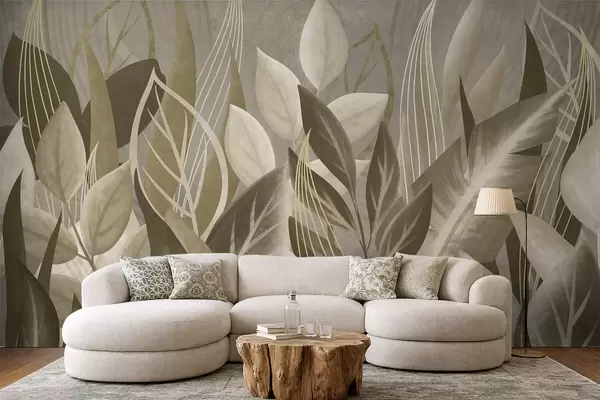 Fotomurales Hojas abstractas en tonos beige y verde Nr. w05148