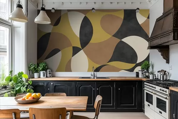 murales de pared Motivo abstracto con formas fluidas y contrastes w05149