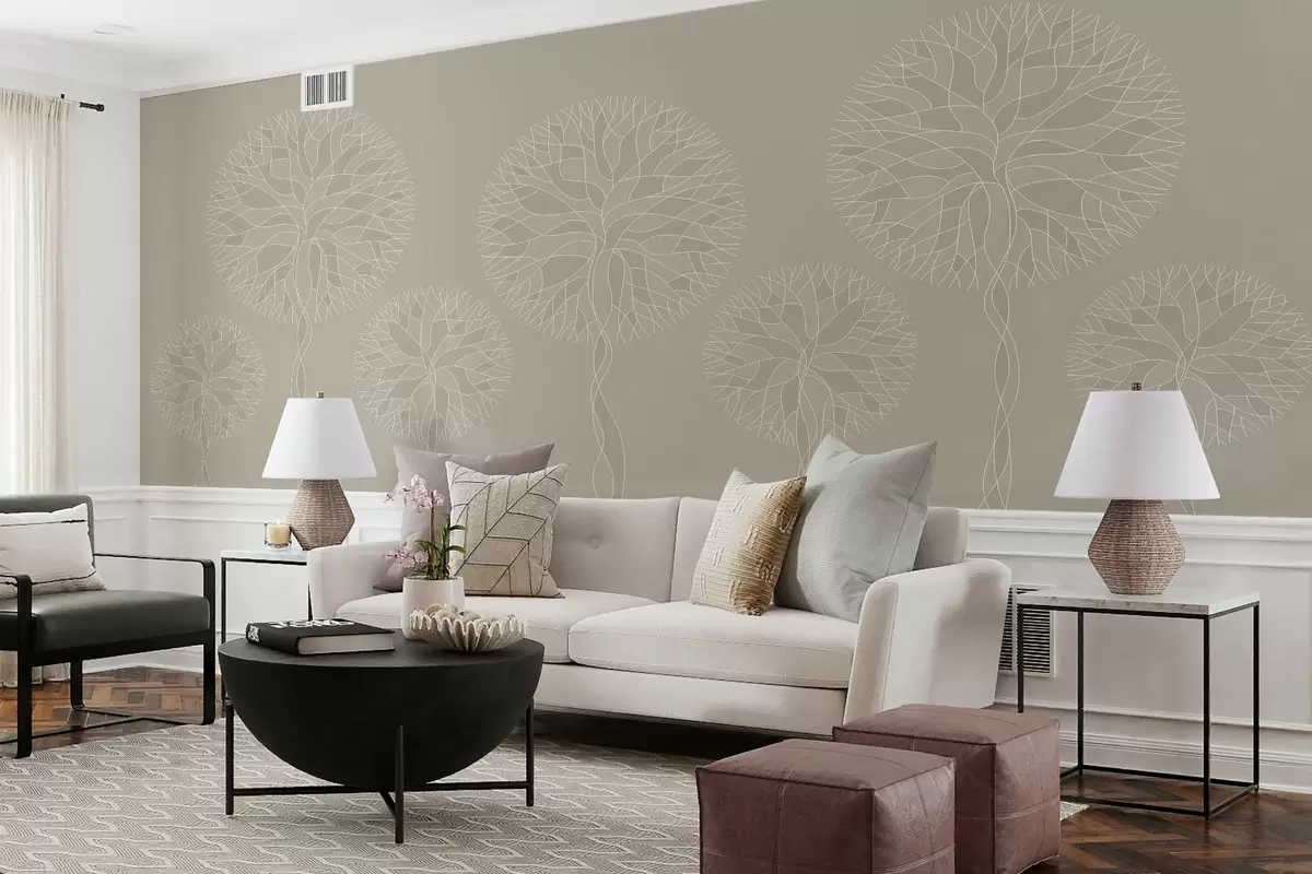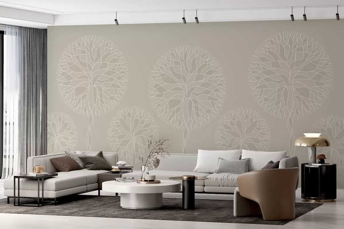 Fotomurales Árboles lineales fantásticos con copas frondosas en tonos beige. Nr. w05213v3