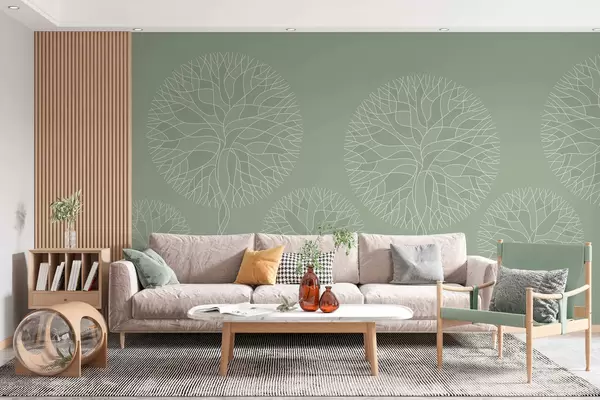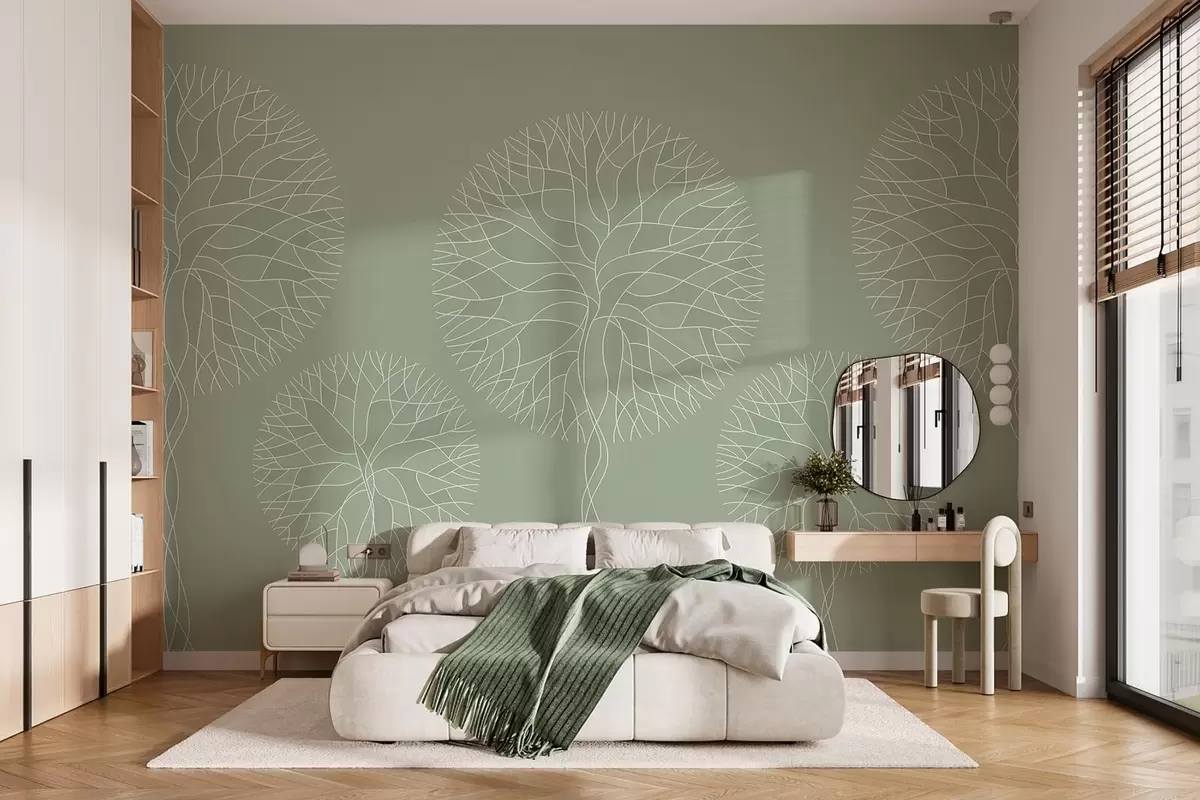 Fotomurales Árboles lineales fantásticos con copas frondosas en tonos verde claro. Nr. w05213v6