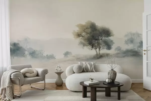 Fotomurales Paisaje tranquilo con un árbol y formas suaves y difuminadas. Nr. w05223v1