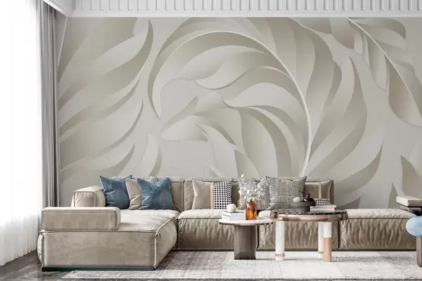 Fotomurales Plumas grandes con textura en tonos beige y oliva. Nr. w05231v1