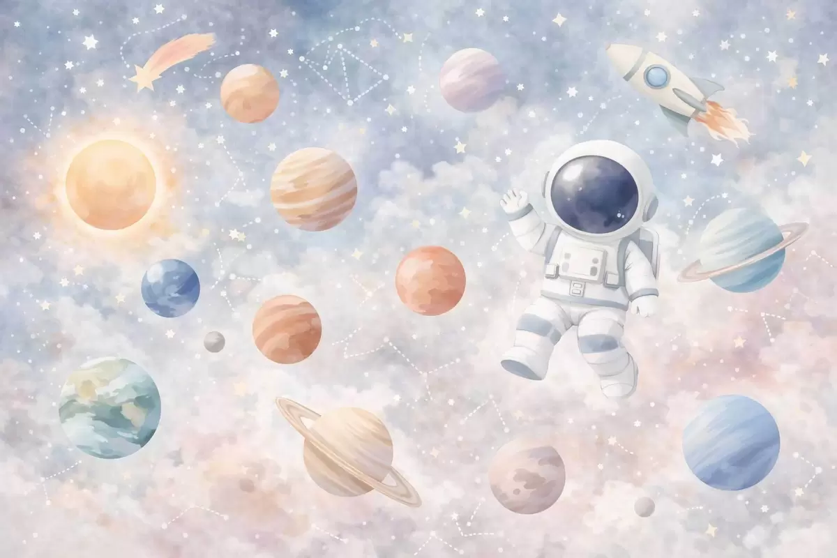 Fotomurales Un pequeño astronauta entre planetas y estrellas. Nr. w05233