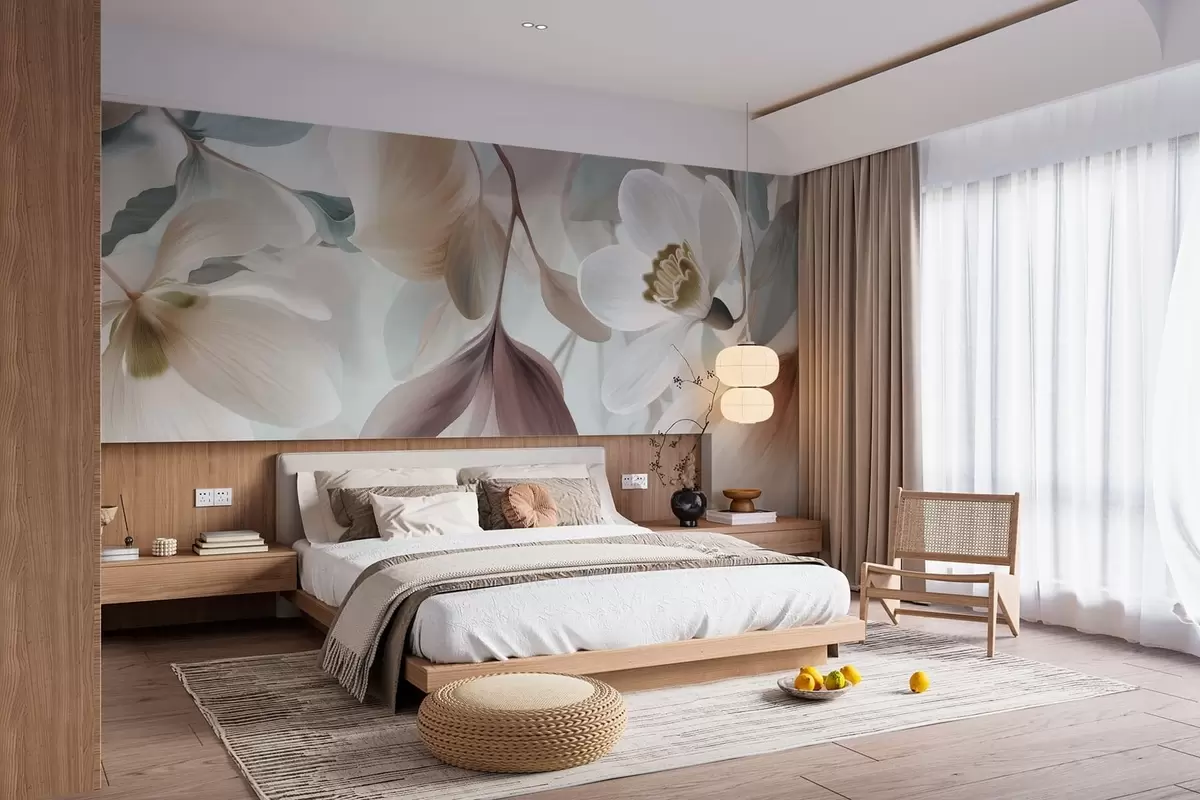 Fotomurales una delicada composición de flores y hojas en tonos pastel Nr. w05240