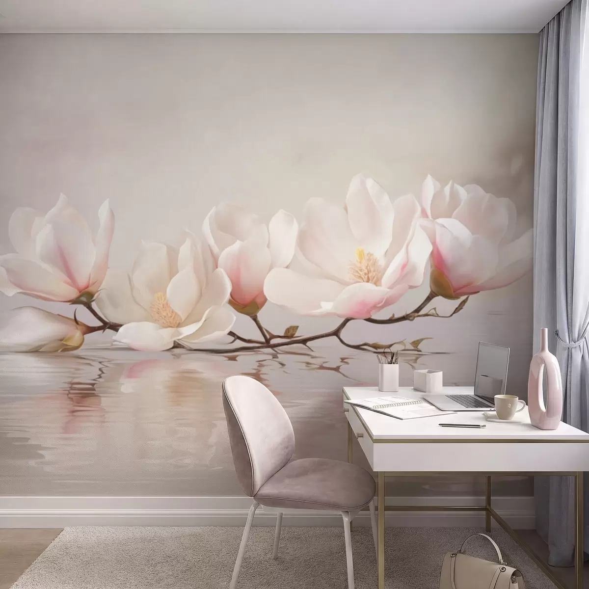Fotomurales Rama de magnolia con flores sobre el reflejo de aguas tranquilas Nr. w05353v1