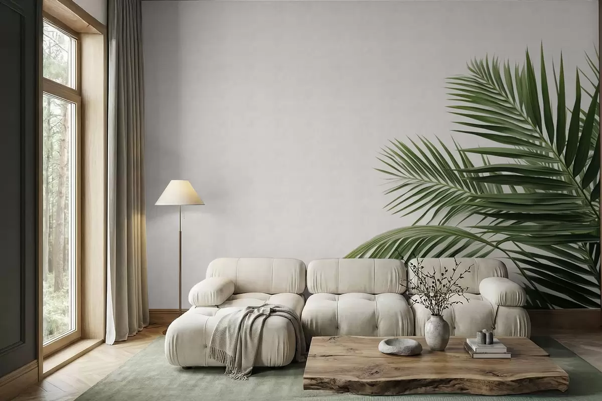Fotomurales Hojas de palmera verdes sobre un fondo claro Nr. w05391