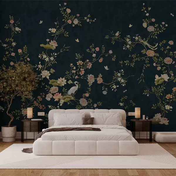 Fotomurales Ramas en flor con pájaros sobre fondo oscuro Nr. w05416v3
