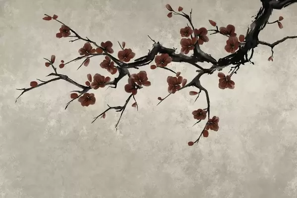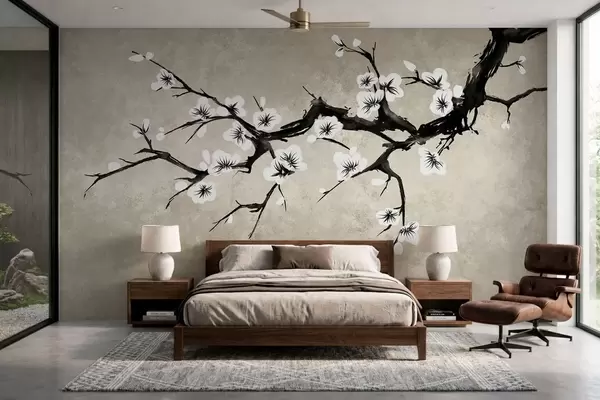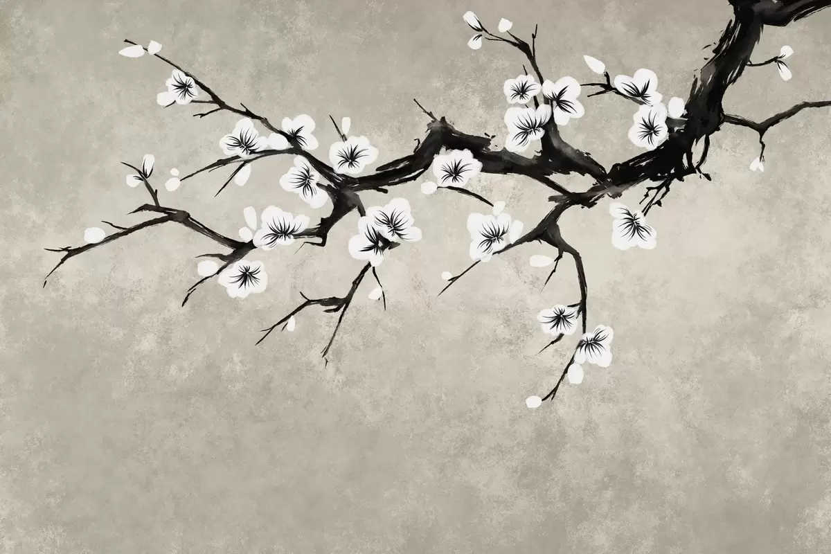 Fotomurales Rama con flores blancas en estilo minimalista Nr. w05425