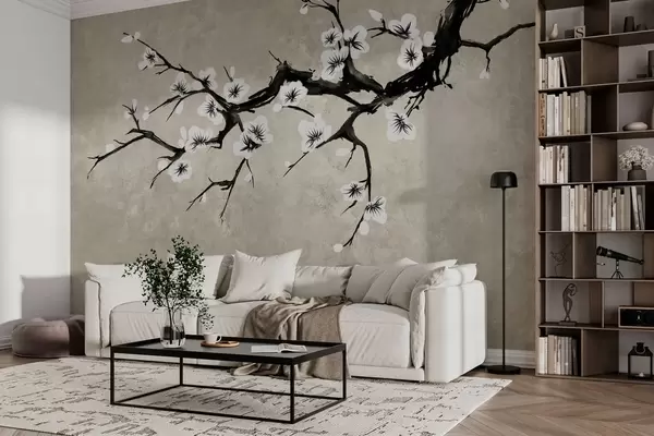 Fotomurales Rama con flores blancas en estilo minimalista Nr. w05425