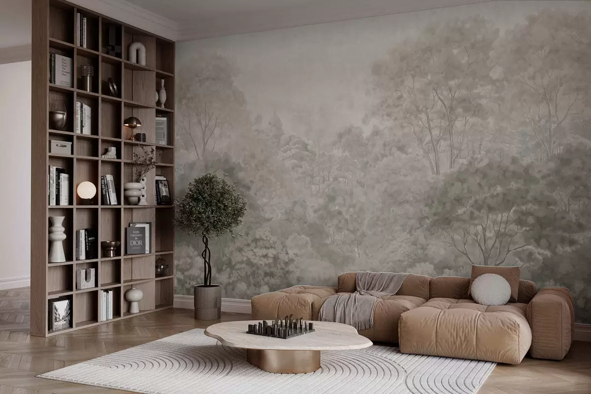 Fotomurales Paisaje forestal antiguo en tonos pastel Nr. w05433v2