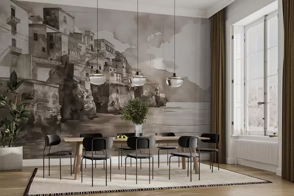 Fotomurales Ciudad acuarela pintada sobre el agua en tonos marrones. Nr. w07879v1