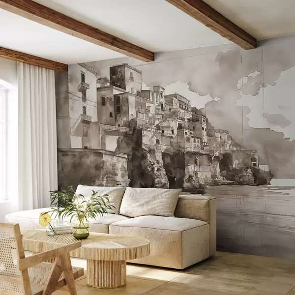 Fotomurales Ciudad acuarela pintada sobre el agua en tonos marrones. Nr. w07879v1