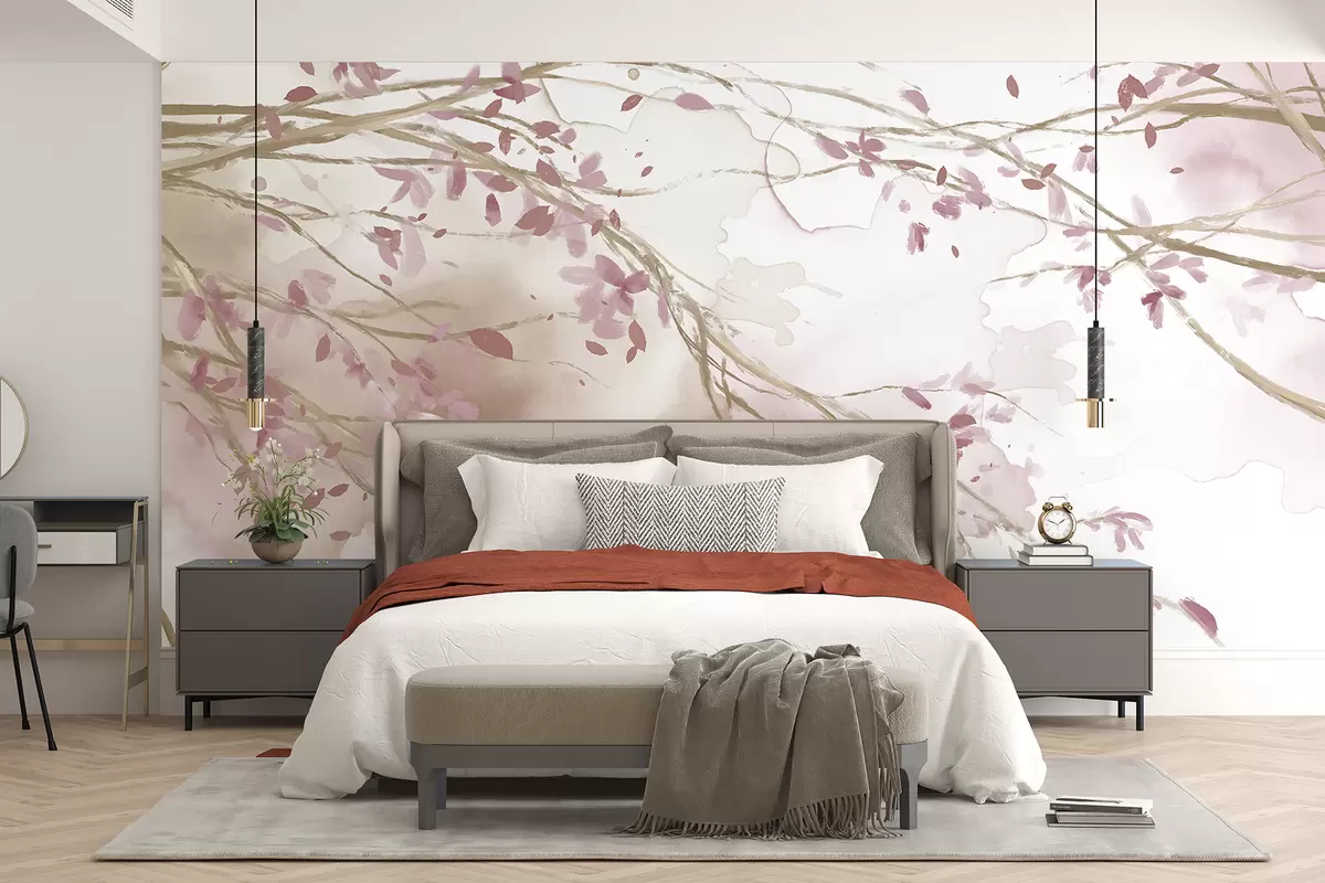 Fotomurales Delicadas ramas florales rosas y blancas con fondo de acuarela suave y borroso Nr. w07919v1