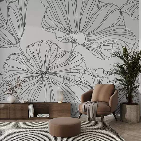 Fotomurales Grandes flores lineales, fondo beige pálido Nr. w07997v1