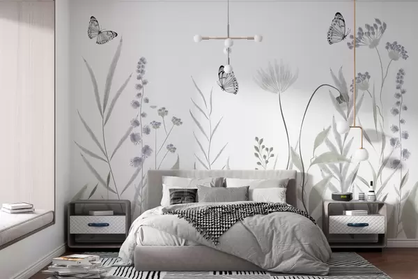Fotomurales Flores silvestres y mariposas. Nr. w08052