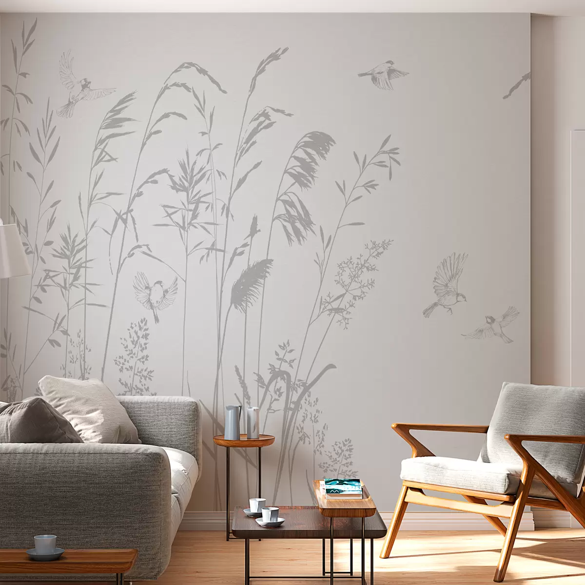 Fotomurales Plantas y pájaros pequeños naturaleza minimalismo color gris. Nr. w08172v1