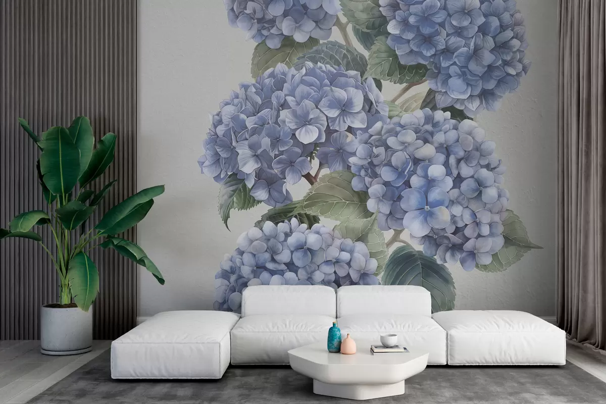 Fotomurales Ramas de hortensia en suaves tonos azules. Nr. w08176v2