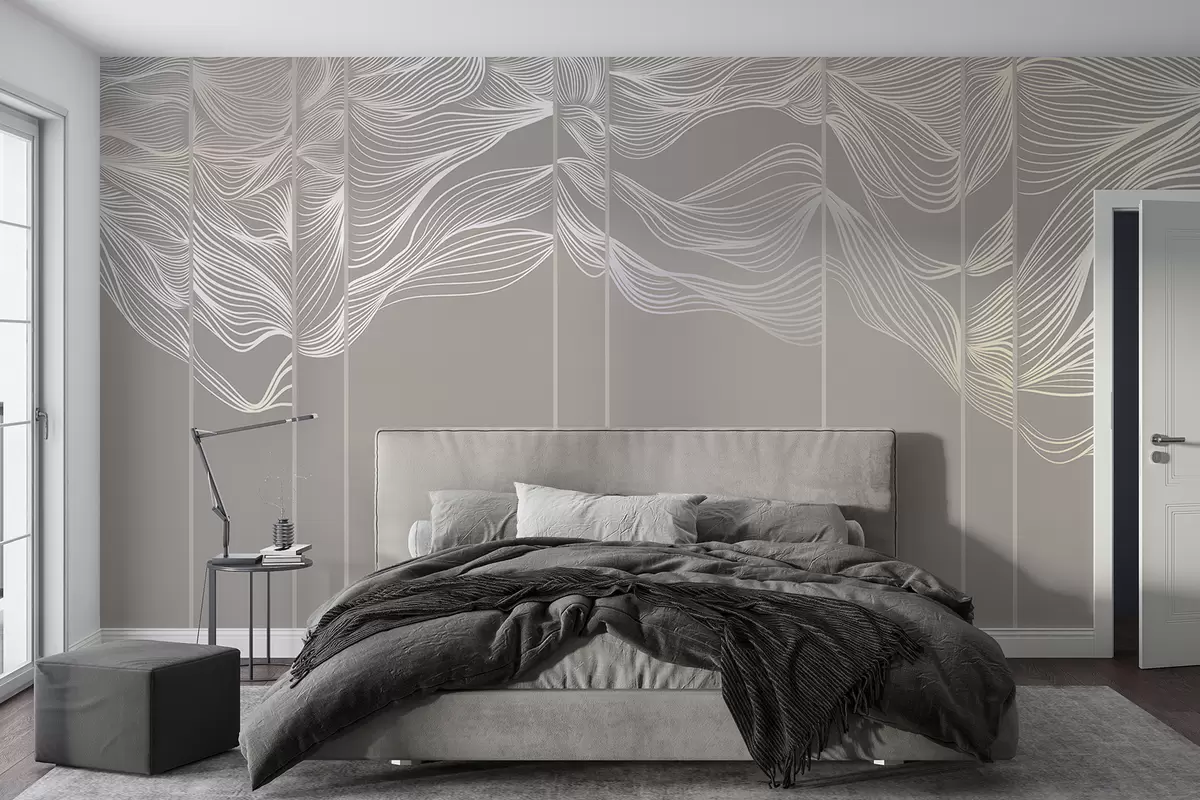 Fotomurales Ondas abstractas de líneas blancas sobre fondo marrón claro Nr. w08263