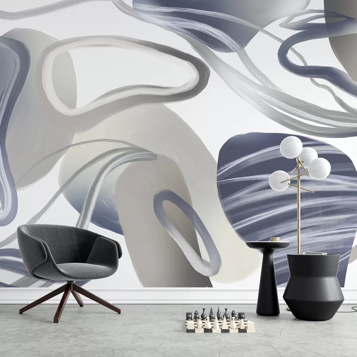 Fotomurales Formas y curvas abstractas arremolinadas en tonos azul oscuro que crean una composición dinámica y fluida Nr. w08279v1