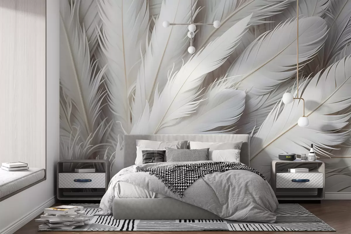 Fotomurales Suaves y esponjosas plumas blancas con una delicada textura ondulada sobre un fondo claro Nr. w08319
