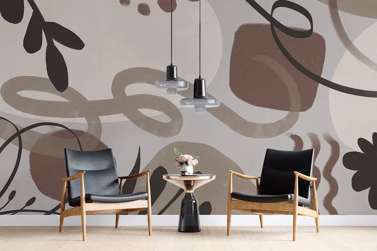 Fotomurales Estampado moderno minimalista de textura abstracta con formas en tonos terrosos de marrón, beige y negro Nr. w08384