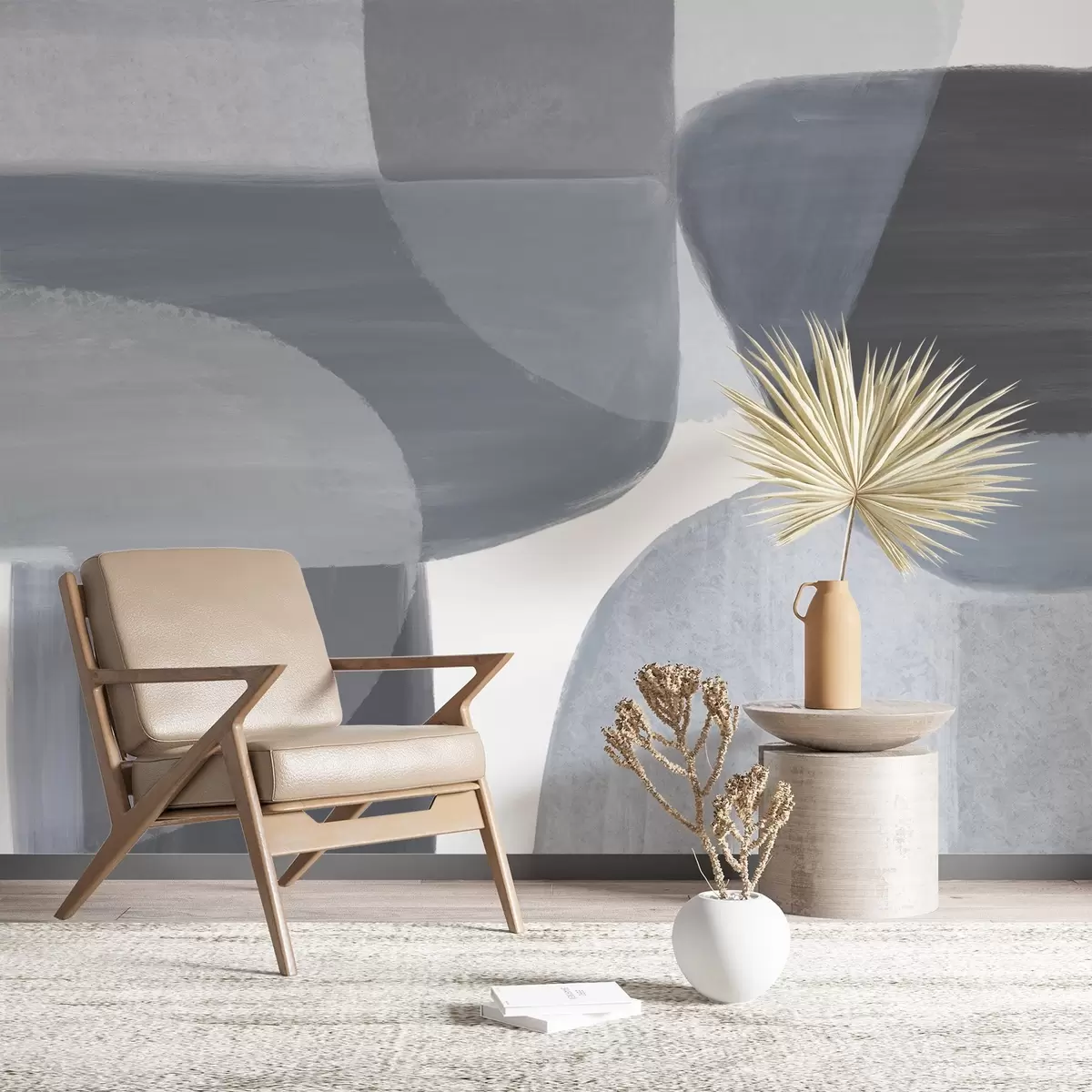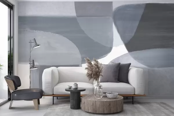 Fotomurales Un estampado abstracto monocromo con formas minimalistas superpuestas en tonos grises y azules. Nr. w08410