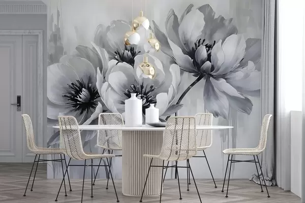 Fotomurales Flores de tulipán monocromas con pétalos suaves y difuminados sobre un fondo claro Nr. w08418
