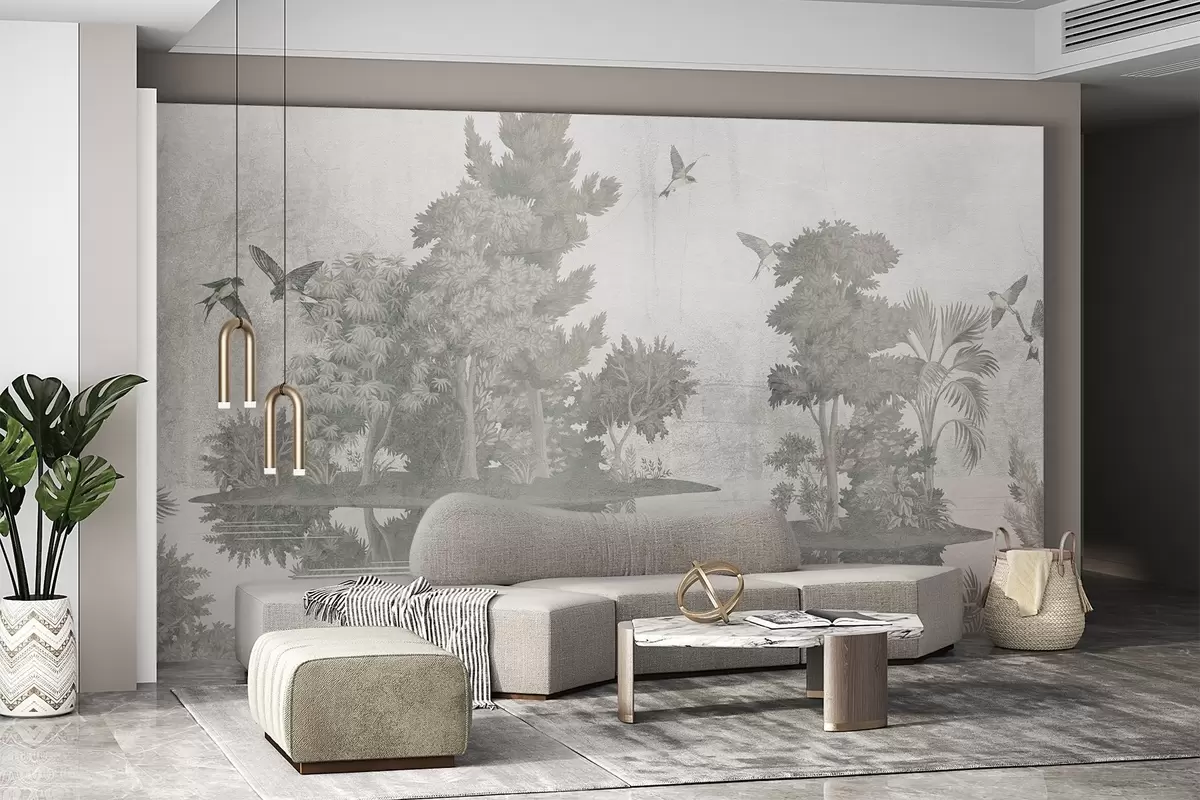 Se puede limpiar suavemente con una esponja suave. Los murales de pared con recubrimiento de barniz pueden limpiarse con agua.